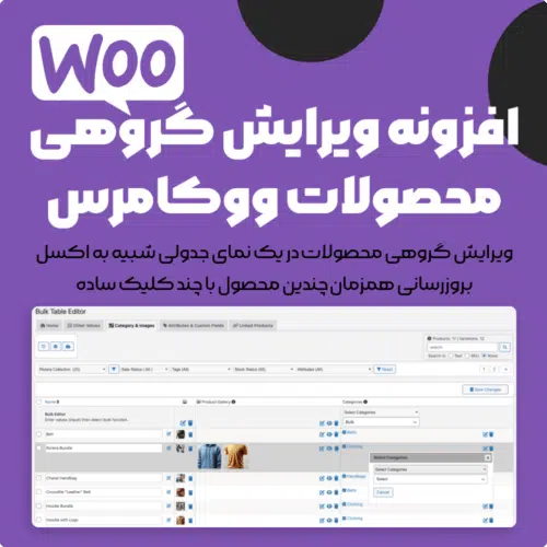 مدیریت دستهبندی و تصاویر با افزونه ویرایش گروهی محصولات ووکامرس Bulk Table Editor for WooCommerce