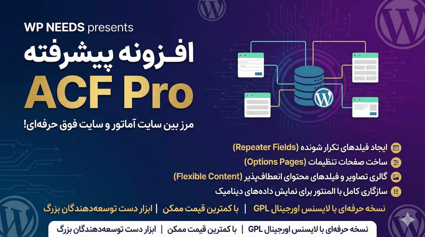 این افزونه مرز بین یک سایت آماتور و یک سایت فوق حرفهای است. ACF Pro به شما اجازه میدهد فیلدها و دادههای اختصاصی بسازید و سایت خود را هوشمند کنید. نسخه حرفهای این افزونه گرانقیمت است، اما نگران نباشید؛ ما آن را در این پکیج با لایسنس اورجینال GPL و با کمترین قیمت ممکن گنجاندهایم تا شما ابزار دستِ توسعهدهندگان بزرگ را در اختیار داشته باشید. با این خرید، شما قدرت مانور روی دیتابیس وردپرس را به دست میآورید که ارزشش صدها برابر مبلغ پرداختی شماست.