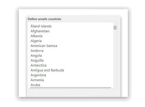اکنون می توانید تعریف کنید که کدام کشورها ناامن یا پر خطر محسوب می شوند. اگر سفارشی از کشوری ناامن انجام شود، در امتیاز ریسک آنها منعکس می شود.