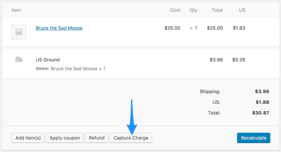 نسخه ۲٫۰+ این افزونه به شما این امکان را می دهد تا معاملات قبلاً مجاز را مستقیماً از صفحه ویرایش سفارش ووکامرس به جای ورود به صفحه کنترل Bambora ثبت کنید. به سادگی سفارش را ویرایش کنید، عملکرد “Capture Charge” را انتخاب کنید و هزینه ها از طریق Bambora گرفته می شود.